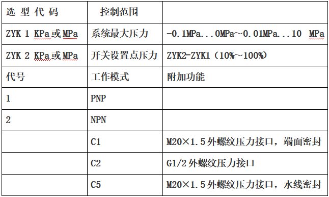 1、压力开关设置点ZYK2的压力大小建议在最大压力范围ZYK1的(10%~100%)以内,以确保控制点工作稳定。