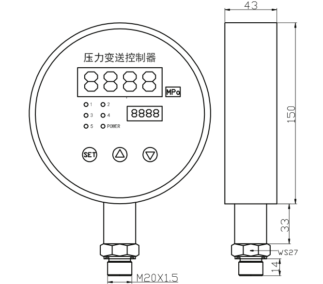 ZYK150智能压力控制器是集压力测量、显示、输出、五路控制于一体的智能数字压力测控产品。不锈钢接头、扩散硅压力芯体、全数字电路板组成,显示直观,操作简单,安全可靠,开关点现场设置。