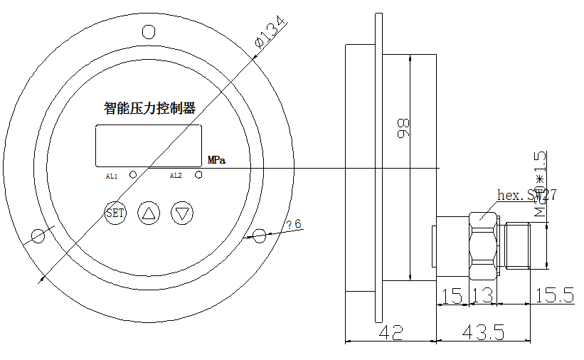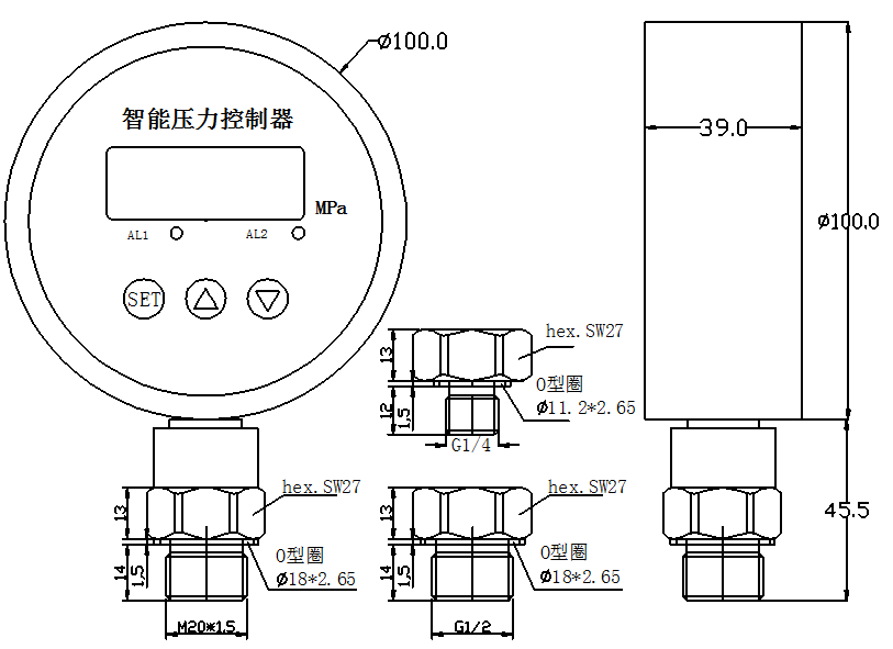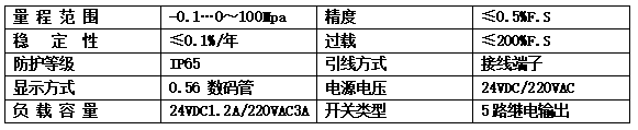 不锈钢接头、扩散硅压力芯体、全数字电路板组成,显示直观,操作简单,安全可靠,开关点现场设置。广泛应用于水电、自来水,石油、化工、机械、液压等行业,对流体介质的压力进行测量和控制。
